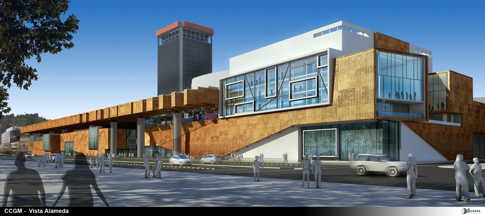 edificio B con el piso de la plaza Zócalo y con sus salas de exposiciones y la